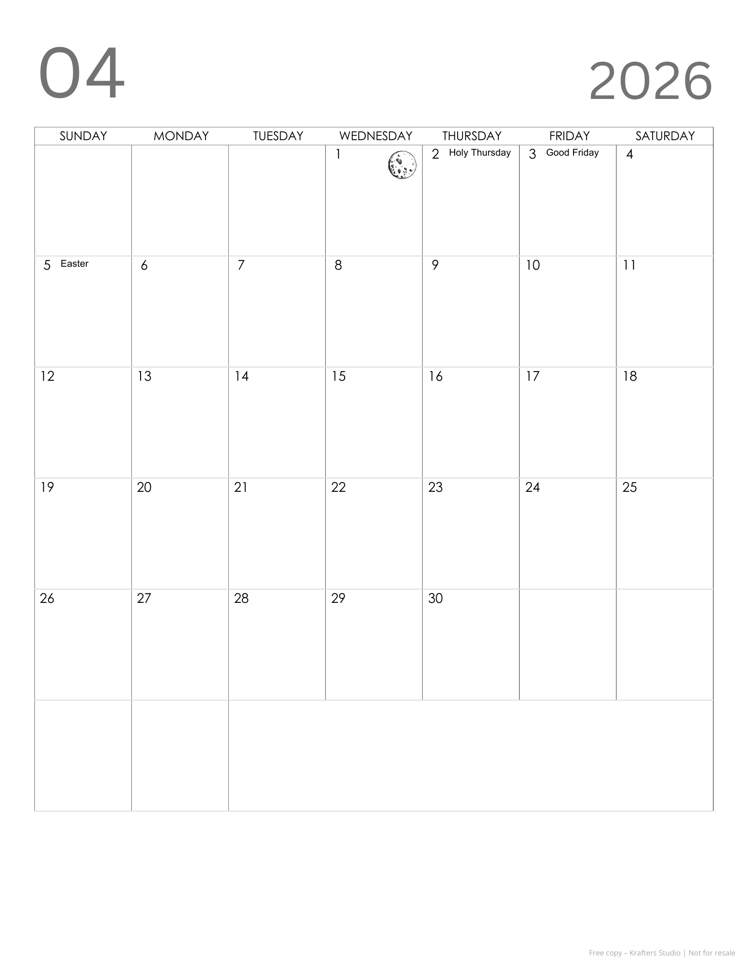 Free 2026 Plain PDF Printable Calendar with Full Moon & Holidays